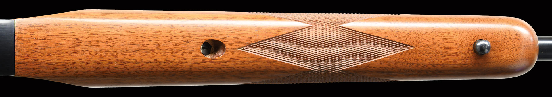 Bbl. 22″ sightless w/ quarter rib. Beavertail forearm & steel capped pistol grip stock of fiddle grained walnut w/ swivel bases & solid red pad. Point pattern checkering is the early wraparound style on the forend. Only 3 rifles have the “D” suffix indicating duplicate serial number. Only 10 pre-suffix rifles were chambered in 280 Rem. Purchased by consignor on a Ruger factory auction.