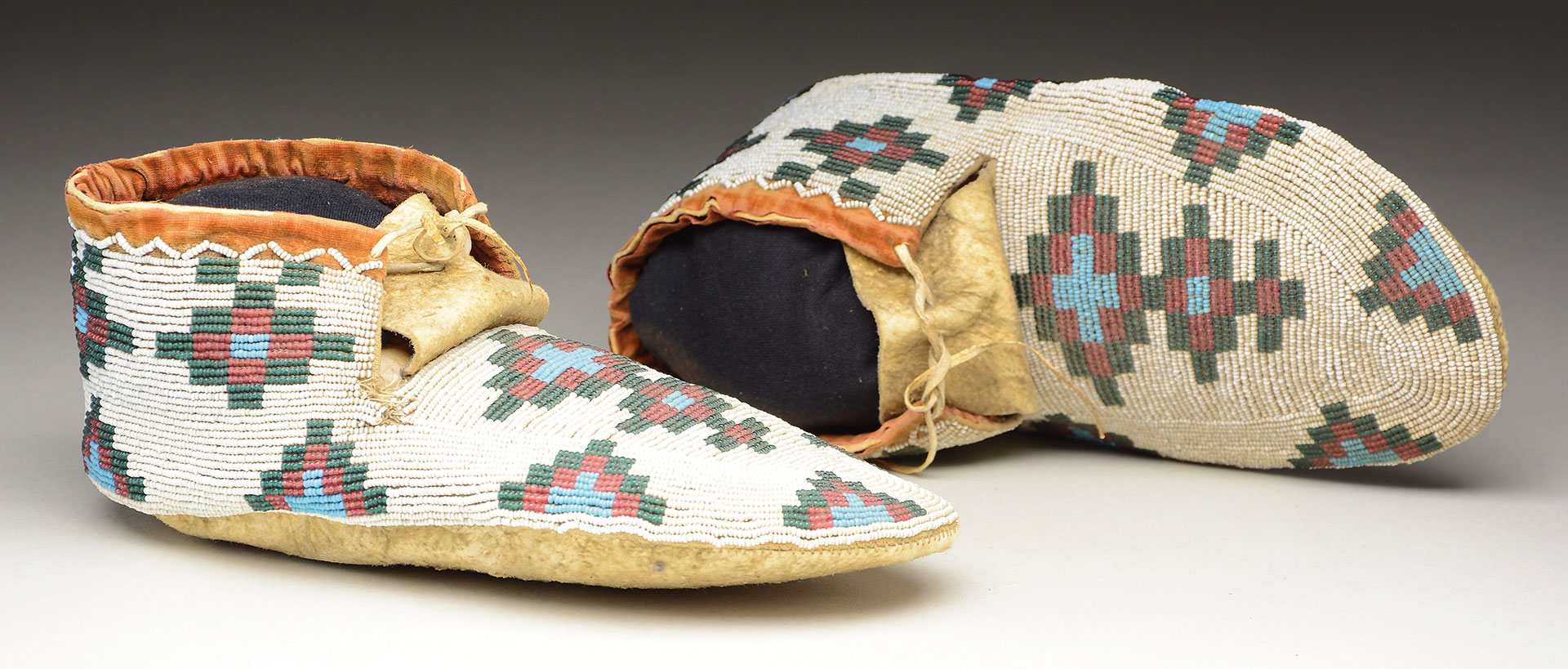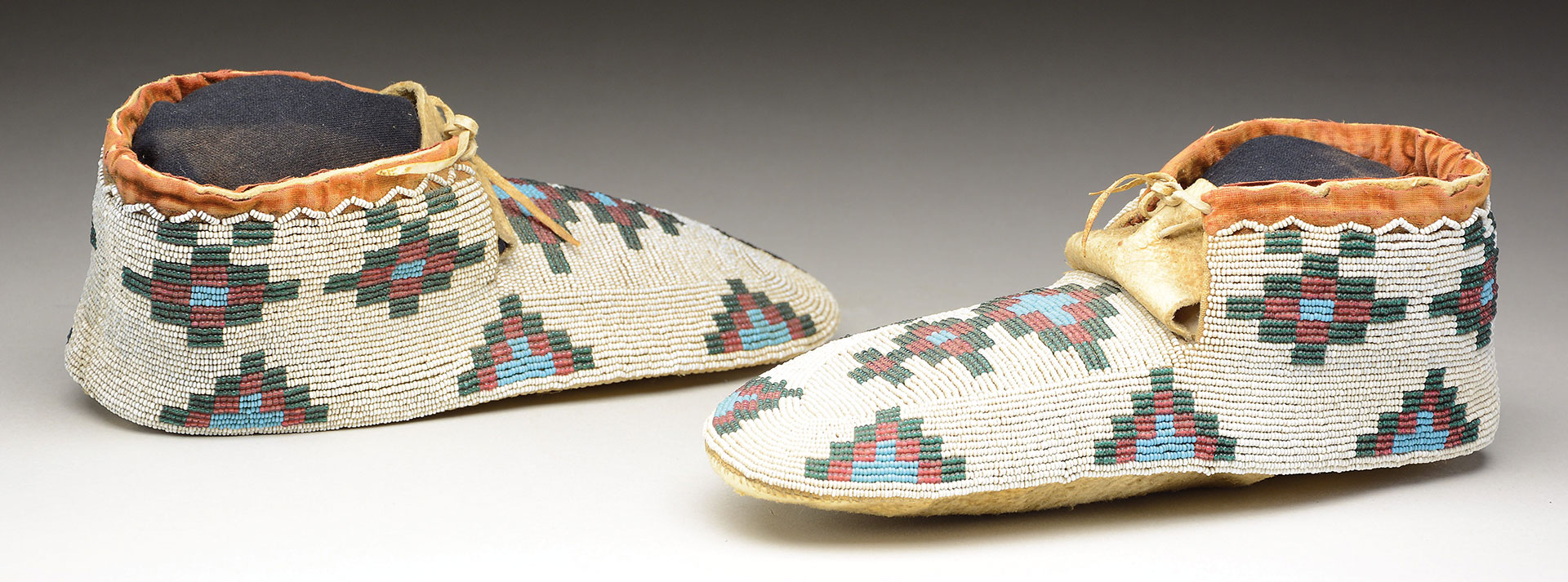 FINE PAIR BEADED NATIVE AMERICAN MOCCASINS