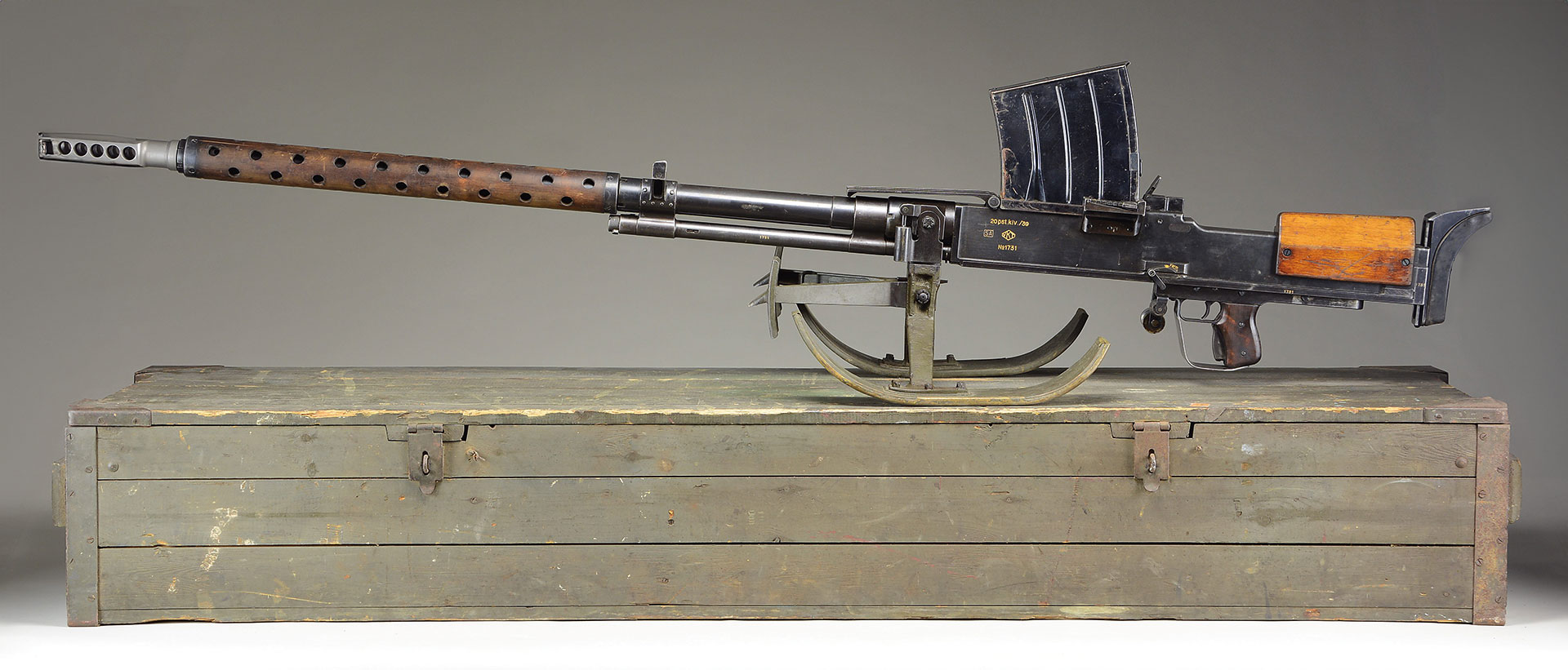 FINNISH LAHTI MODEL 39, 20MM ANTI-TANK RIFLE WITH AMMO & TRANSIT CHEST