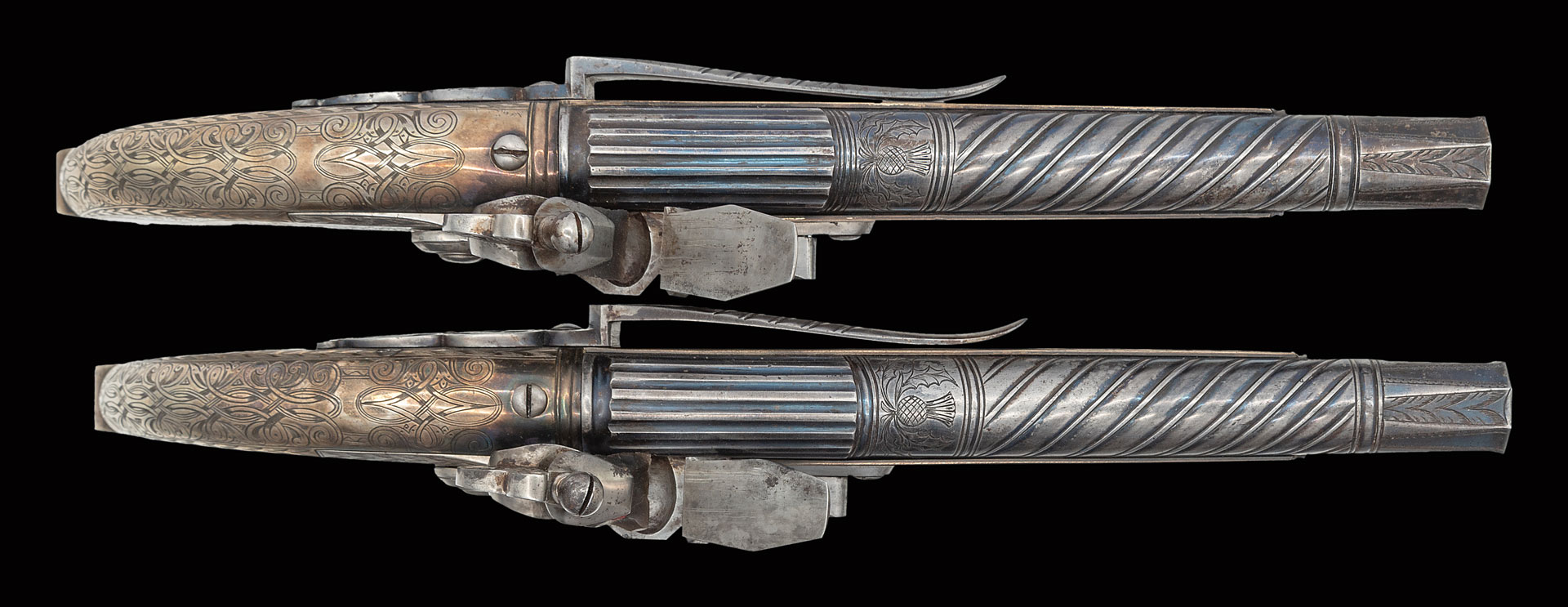SHOWY SCOTTISH REVIVAL ALL METAL FLINTLOCK PISTOLS BY PLAYFAIR