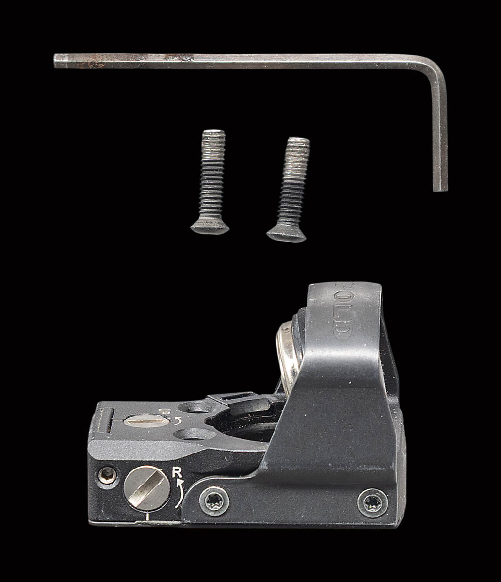 This incredibly powerful cartridge launches a 900 grain bullet at 2400 ft per second with a muzzle energy of close to 6 tons. It is one of the special cartridges that American Hunting Rifles (AHR) chambered in their custom rifles (no longer accepting orders). This fast handling rifle has 20″ slightly tapered round barrel holding sleeved on front sight ramp with fiber optic red bead and island base with dovetail for Leupold red dot sight. Caliber is marked at left rear. CZ 550 Safari Classics magnum length Mauser type action has aperture rear sight adjustable for windage and elevation mounted on rear bridge. Bolt has engraved pear shaped knob and model 70 type safety. Drop box bottom metal has hinged floorplate held by button at front of trigger guard bow. Single stack magazine accepts two cartridges with one “up the spout” for a total of three available shots. Brick red composite pistol grip stock measures 14-1/8″ over black Decelerator pad and is fitted with recoil reducer. Stock also has two recoil bolts, cast in checkering and right hand shadow line cheekpiece. WEIGHT: 11 lb. 6 oz. UNATTACHED ACCESSORIES: Leupold Red Dot reflex sight is in cardboard box. STATUS: MODERN.
