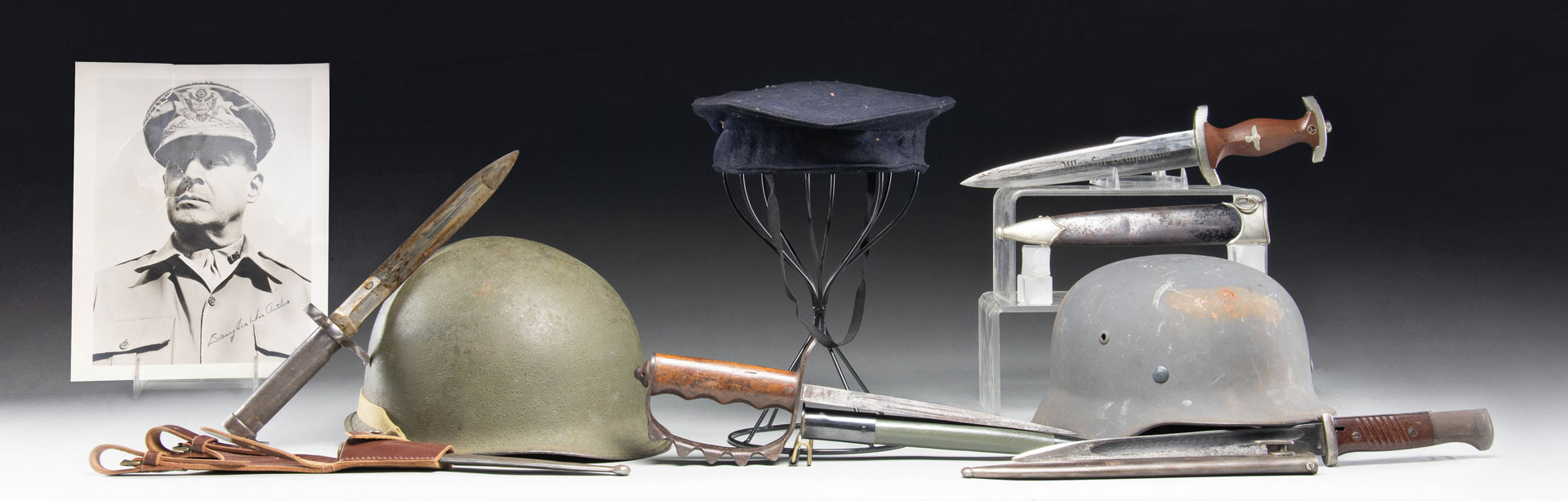 WWII GERMAN DAGGER, HELMET, US HELMET, AND MORE